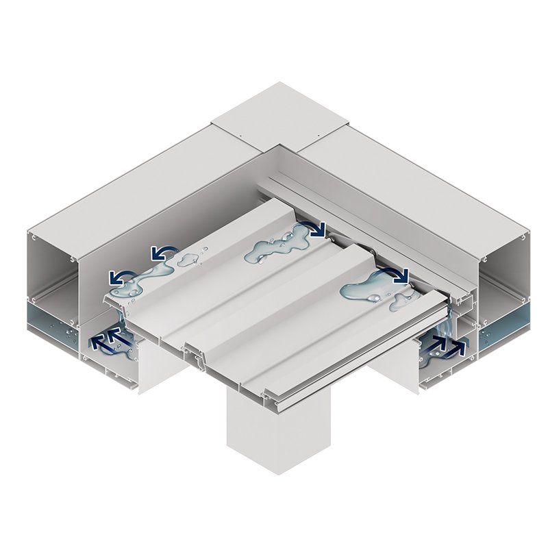Dikey profillere entegre edilmiş drenaj sistemi, yağmur suyunun sorunsuz tahliyesini sağlar.