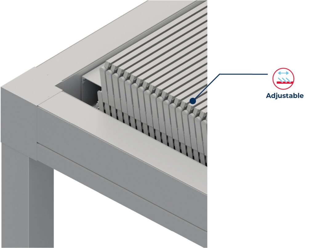 Ayarlanabilir lameller sayesinde güneş, rüzgâr ve gölge kontrolü.